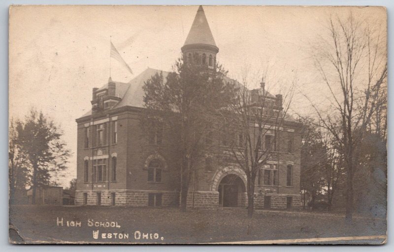 Weston Ohio~High School Building Flies US Flag~Center Turret~c1910 RPPC