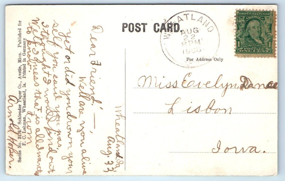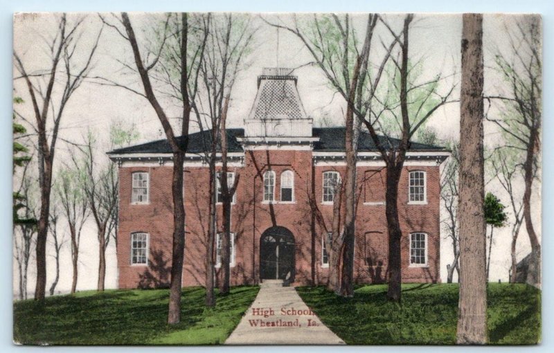 WHEATLAND, IA Iowa ~ HIGH SCHOOL 1908 Clinton County Hand Colored Postcard