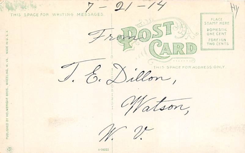 Wheeling at night, Wheeling, West Virginia WV Postcard - Unused Grade: 2 Size: R - Regular size: Approx 3 1/2 X 5 1/2 inch (9 cm X 14 cm) Grading Scale: Grade 1 = Perfect corners Grade 2 = Very Minimal corner ... Read More