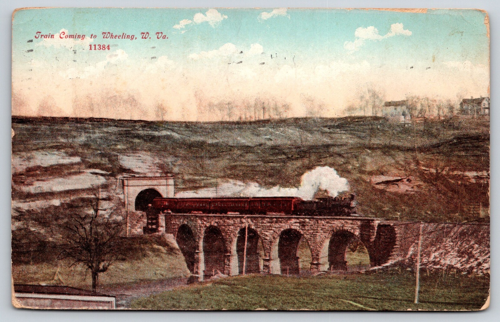 Wheeling West Virginia~Passenger Train Approaching~Tunnel~Bridge~1912 Postcard