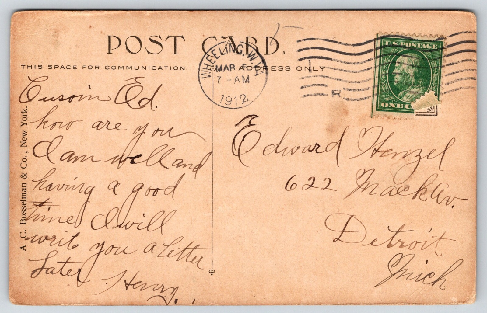 Condition: Vintage Postcard listed as "used" because of age. It may or may not be postally used. We provide ... Read more about the seller notes Vintage Postcard listed as "used" because of age. It may or may not be postally used. We provide scans that show all edges and corners. See photos, front and back, for condition. Read Less about the seller notes
