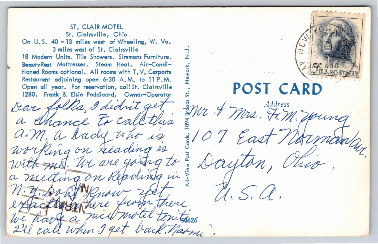 Wheeling West Virginia~St Clair Motel Roadside View~Postmarked~Vintage Postcard