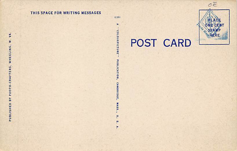 Wheeling Wheeling - Wheeling, West Virginia WV Postcard Postal Date: Unused Grade: 1 Size: Regular Size Postcard - approximately 3 1/2 inch x 5 1/2 inch (9 CM x 14 CM) Grading Scale: Grade 1 = Perfect corners ... Read More