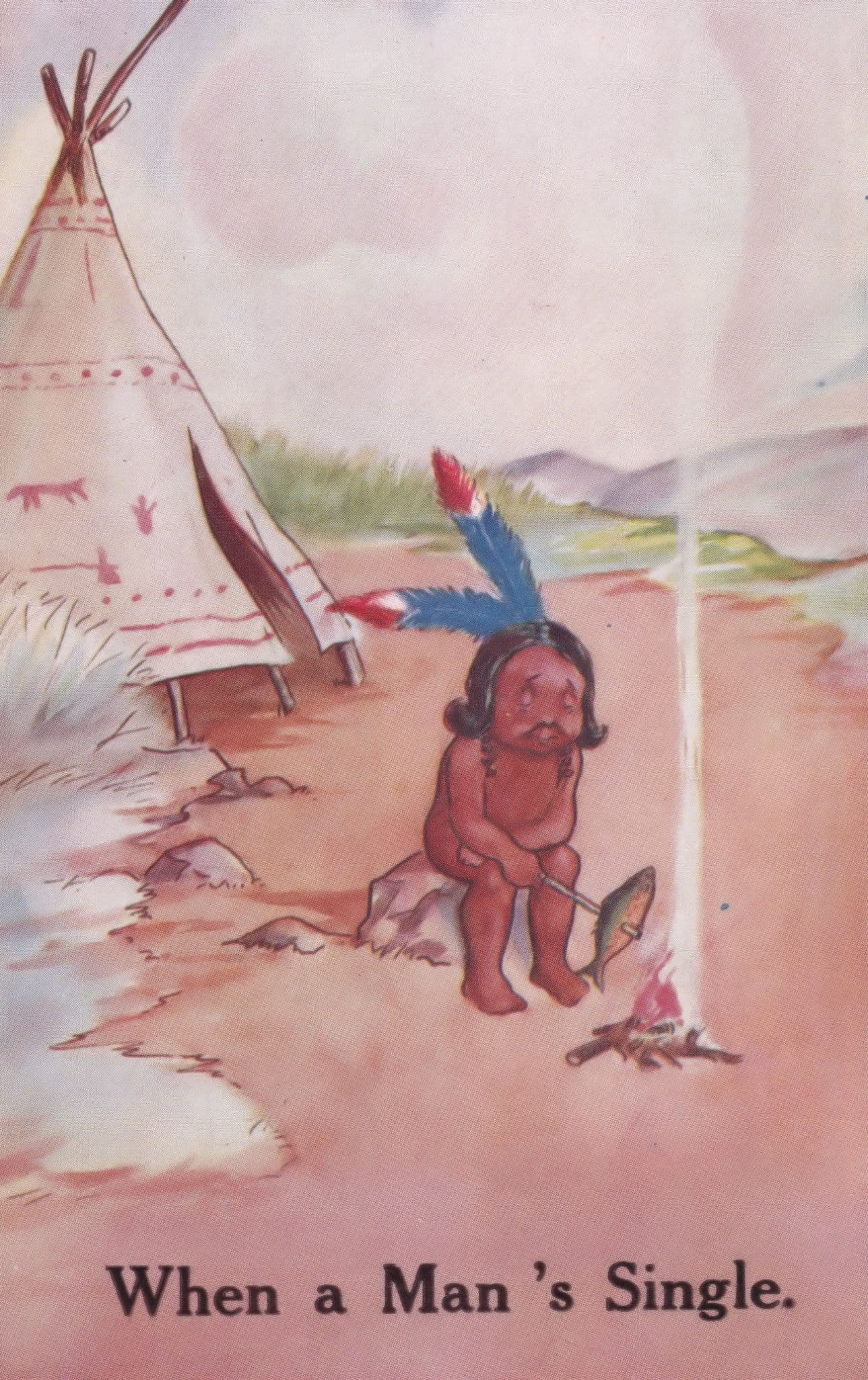 When A Mans Single Red Indian Tent Comic Old Postcard