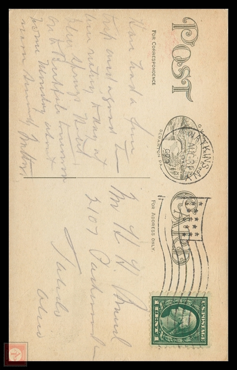 Some scans of postcards result in colored streaks which are a result of the error in scanning and not a fault of the postcard.