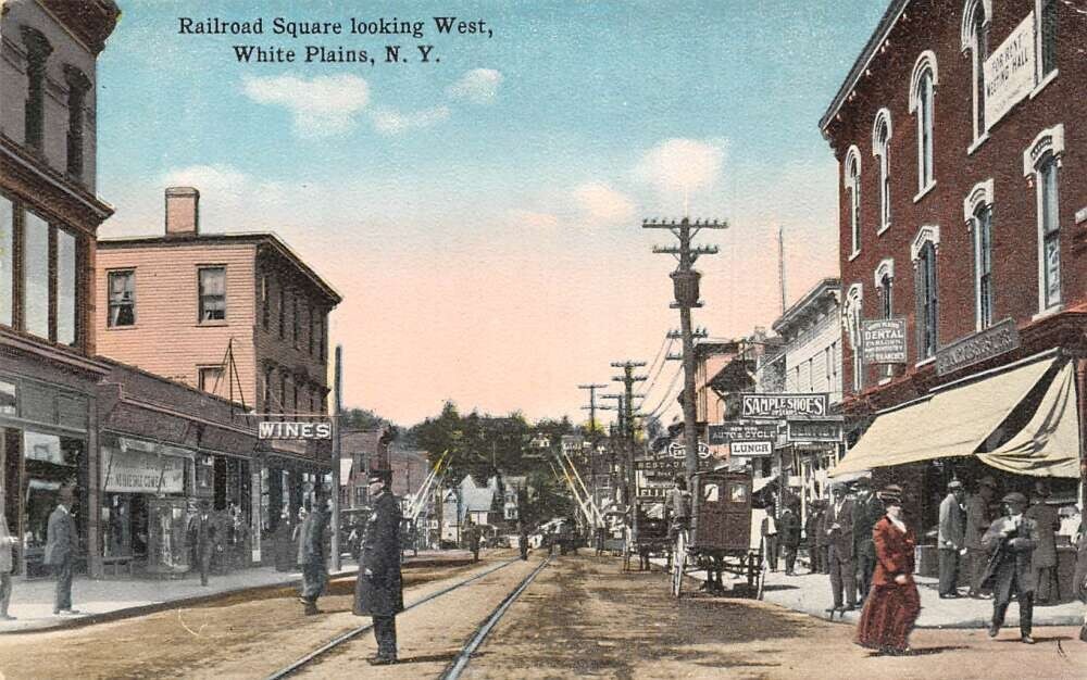 White Plains New York Railroad Square Looking West Vintage Postcard AA110310