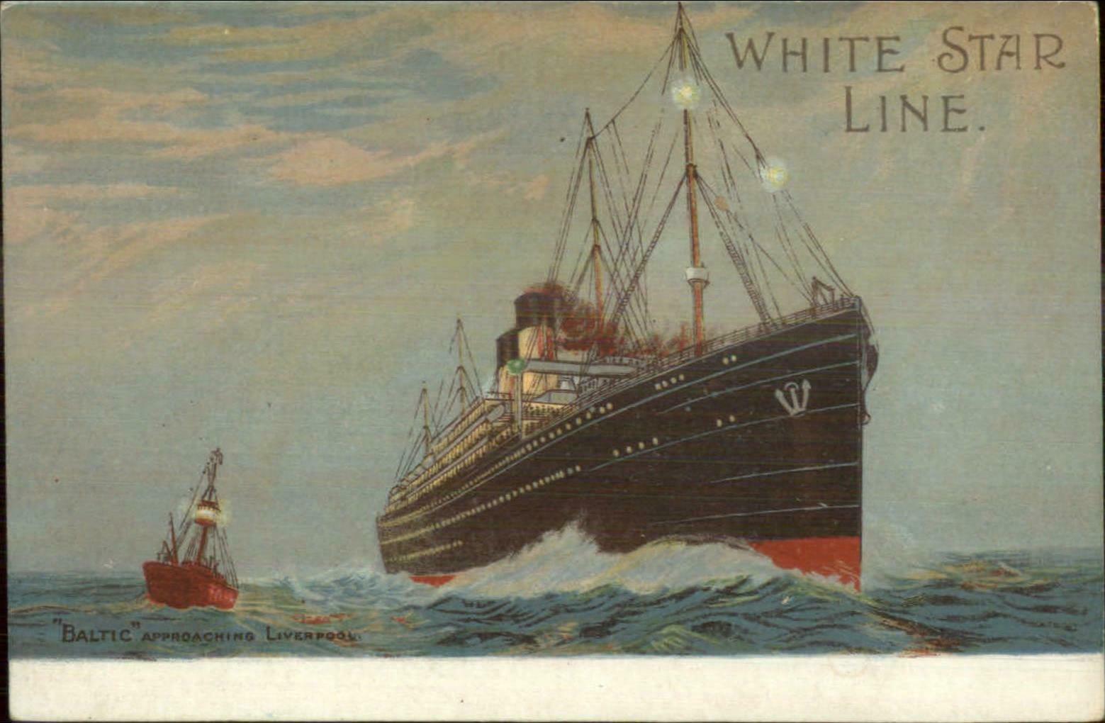 White Star Line Steamship Baltic & Lightship Lighthouse Ship c1910 Postcard
