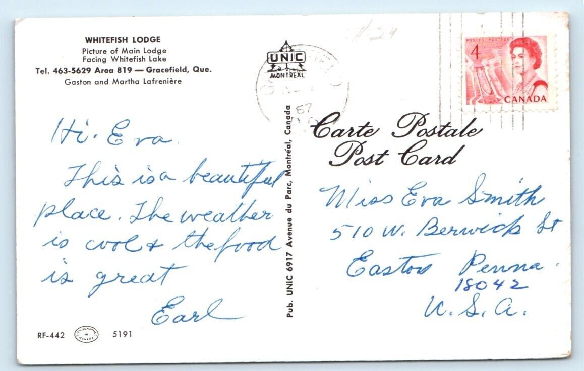 Whitefish Lodge GRACEFIELD Quebec PQ Canada Postcard