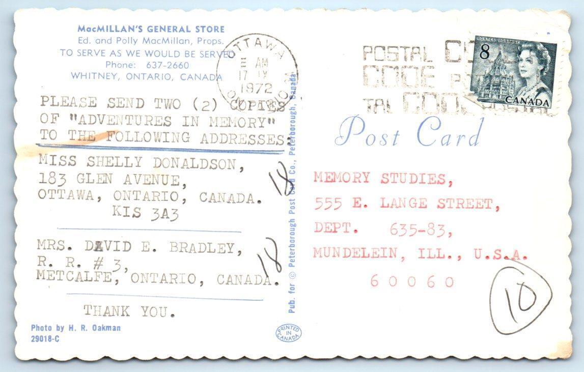 WHITNEY, Ontario, Canada ~ Roadside MacMILLAN'S GENERAL STORE c1972 Postcard
