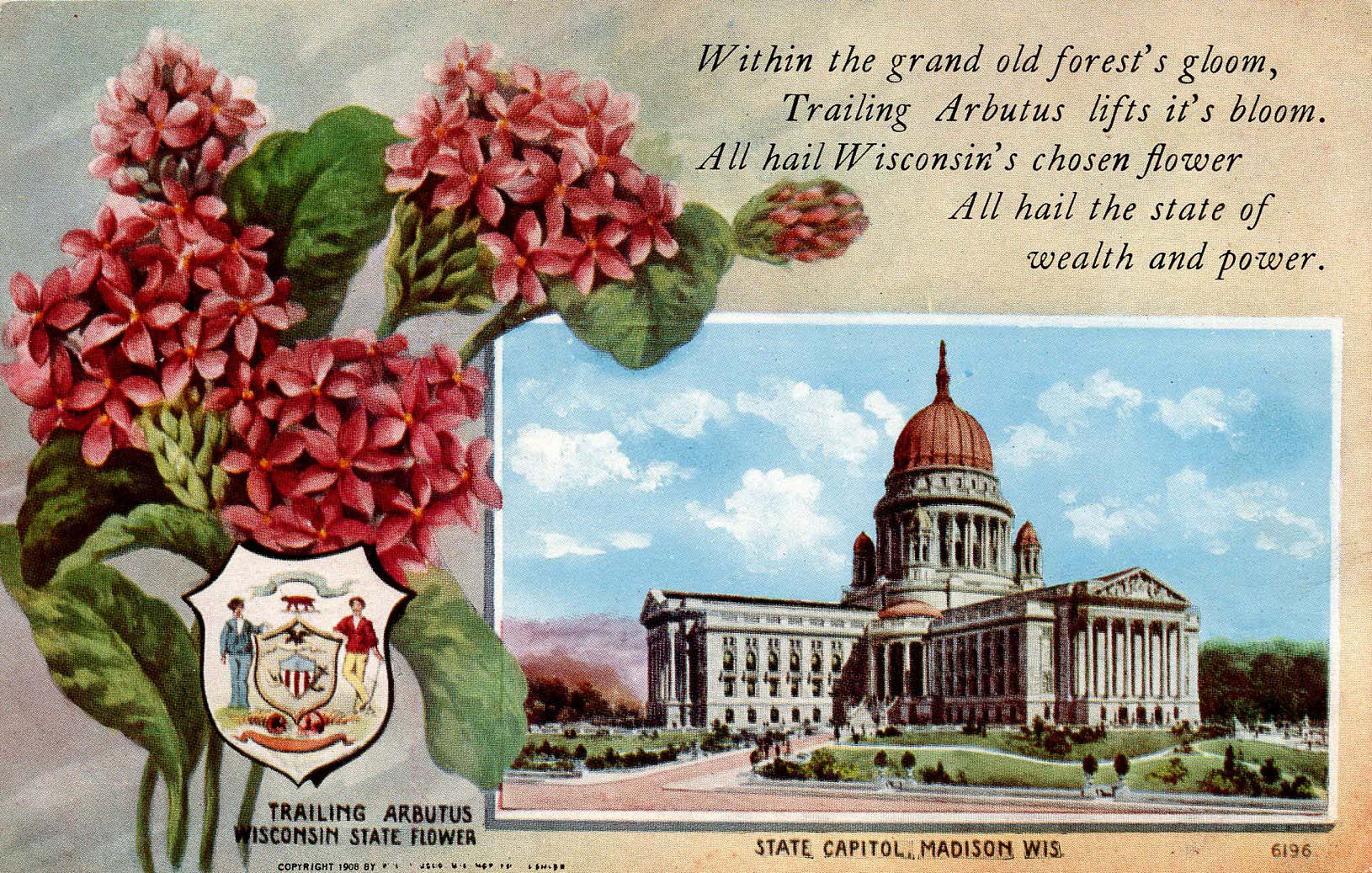 WI - State Flower & Capitol. Trailing Arbutus & Madison