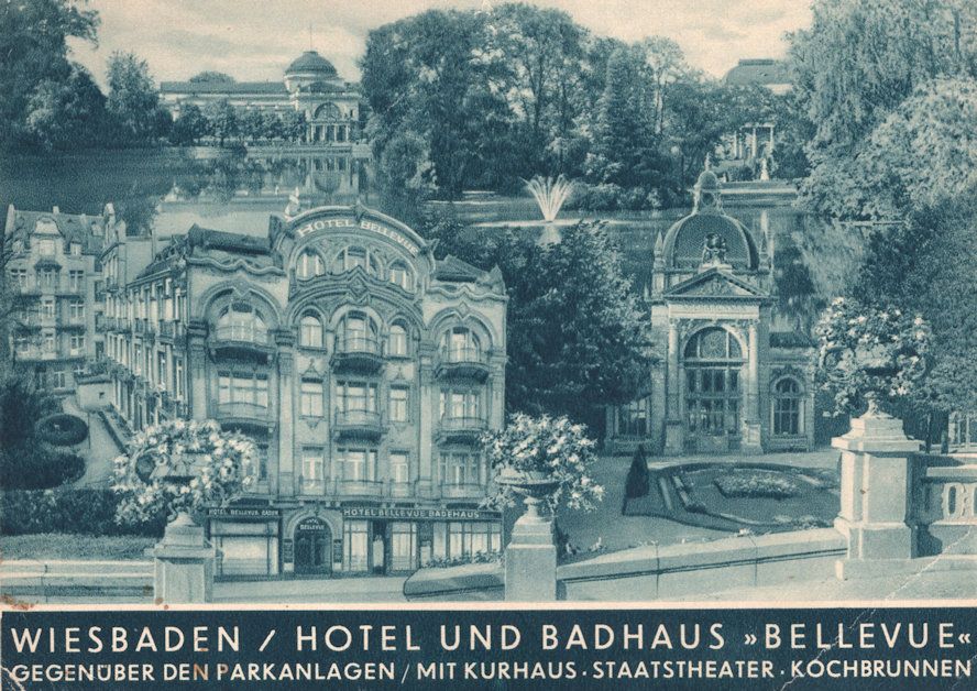 Wiesbaden Hotel Und Badhaus Bellevue Antique Advertising Postcard
