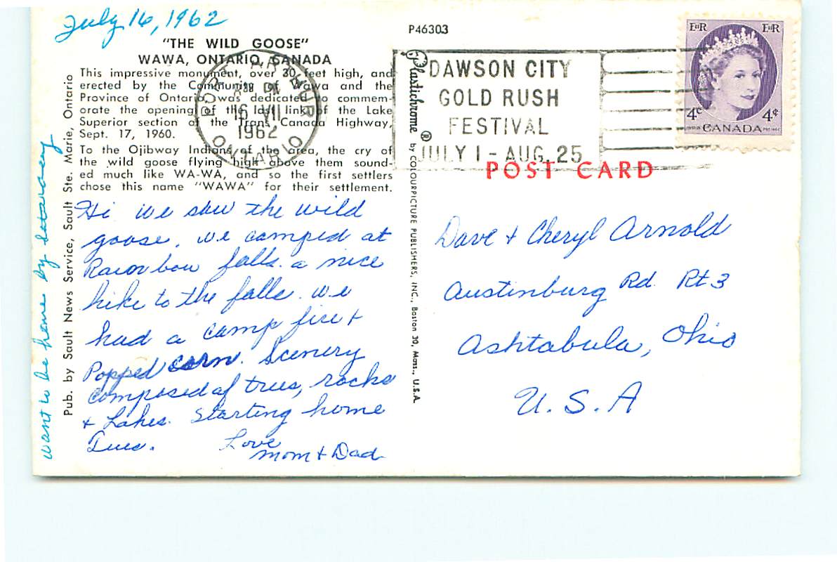 Wild Goose Monument Ontario Canada Wild Goose Monument Ontario Canada Country: Era: Publisher: Size: Type: * We ship your new Postcards in plastic sleeve and also protective cardboard mailer for added protec ... Read More