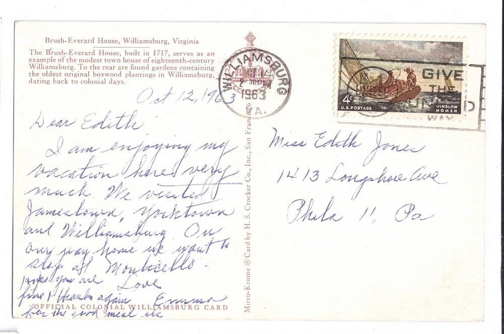 Postmark: Â Â Â Â Â Â Â Â Â 1963Â Williamsburg VA