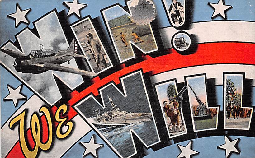 Win We Will Patriotic Postcard Unused, Grade: 2, , Size: Regular size: Approx 3 1/2 X 5 1/2 inch (9 cm X 14 cm) Grading Scale: Grade 1 = Perfect corners Grade 2 = Very Minimal corner wear, no creases Grade 3 = ... Read More