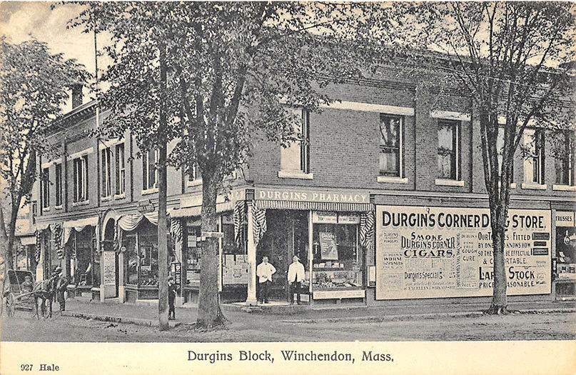 Winchendon MA Durgans Block Pharmacy Cigar Ad Poster Postcard