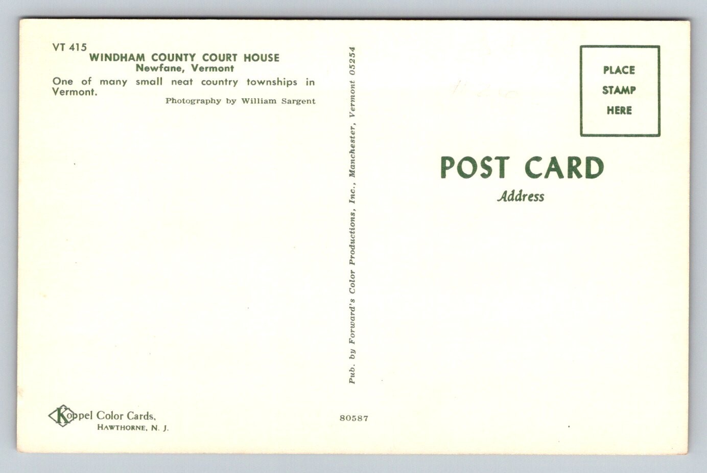 Windham County Court House Newfane Vermont Postcard