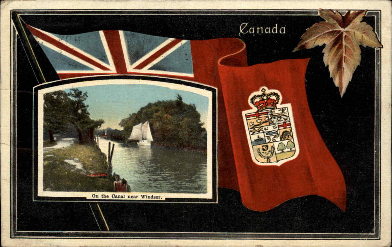Windsor Ontario ON Canal Flag Heraldic Emblem c1910 Postcard