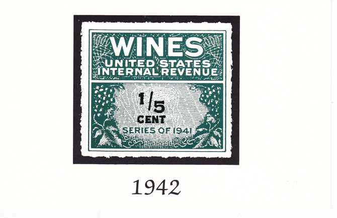 Wines US Internal Revenue Stamp pictured on Post Card. 1/5 Cent Series of 1941. Glossy finish, but not chrome style printing. Excellent condition.