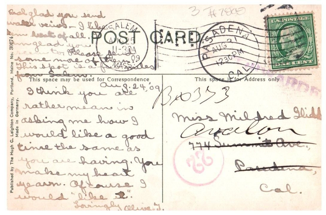Winham Lake Beverly Massachusetts Postcard Posted 1909