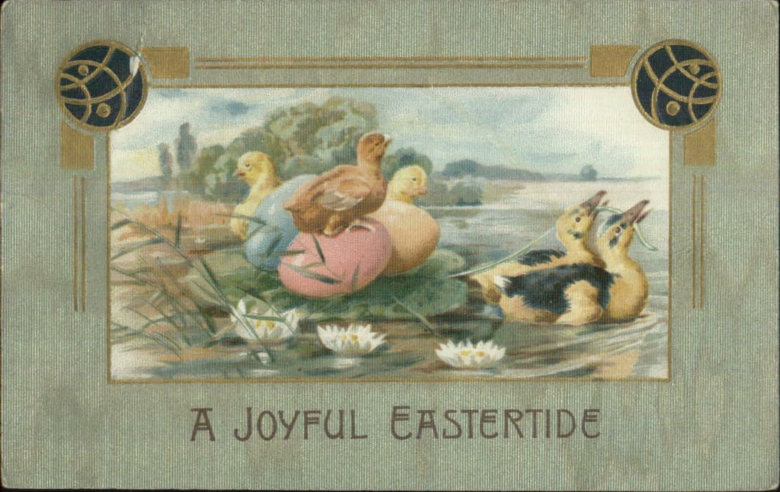 Winsch Easter Chicks or Baby Ducks Colorful Eggs c1910 Postcard