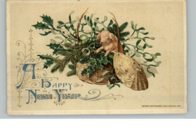 WINSCH NEW YEAR Pig in Basket c1910 Postcard