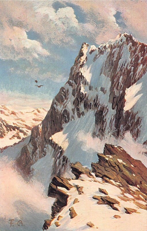 Winter Scenic View Cliffs Landscape Art signed Fritz Bayerlein postcard Published with xdm.it software