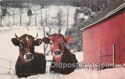 Winter Vermont Farm Cow Postcard 1987,