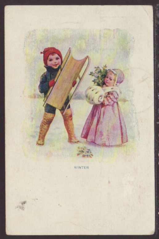 Winter,Boy With Sled,Girl Used Postcard Litho divided back. VG Grading Terms MINT - Perfect in every way, regardless of age. Rarely seen, may not exist. NM - Near Mint, you have to look closely to see tha ... Read More
