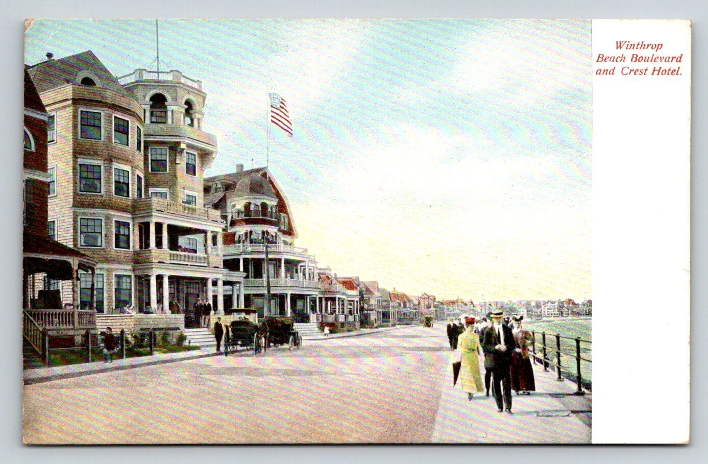 Winthrop Massachusetts Beach Boulevard Crest Hotel Postcard