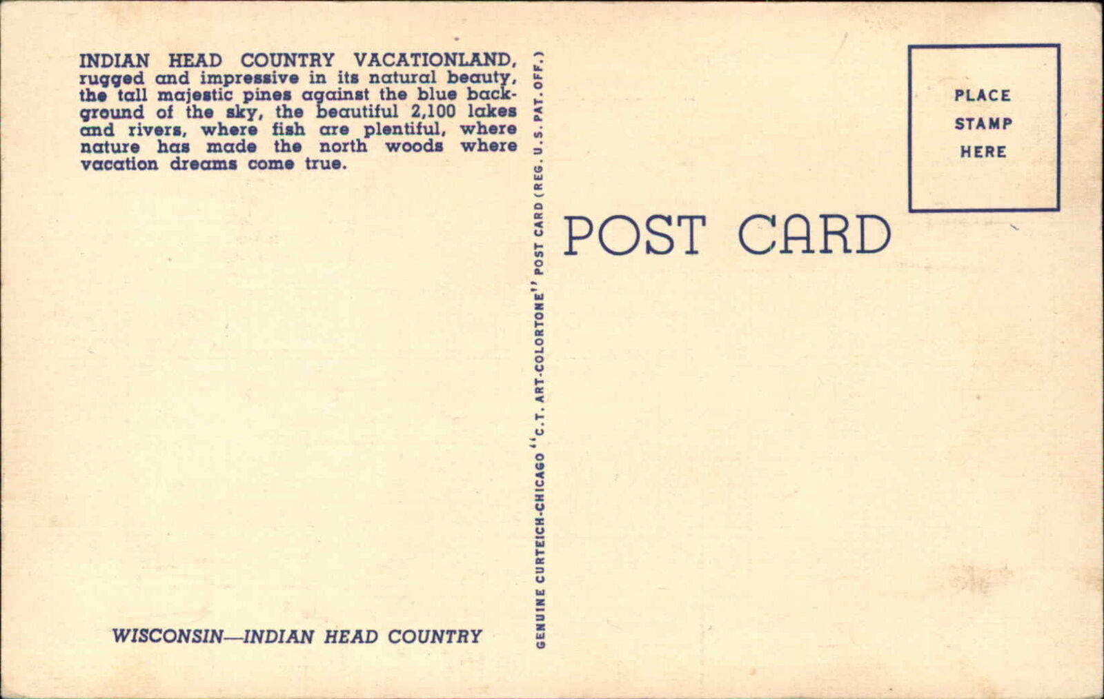 WISCONSIN INDIAN HEAD Map NATIVE AMERICANA Old Linen Postcard