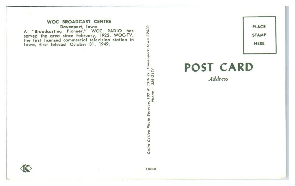 WOC Broadcast Centre, Davenport, IA Postcard