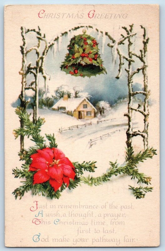 Wolf Postcard Christmas Greetings Ringing Bell Covered Berries Pasadena CA 1924