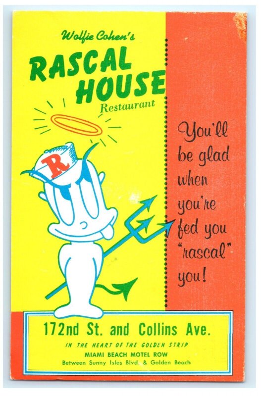 Wolfie Cohen's Rascal House Restaurant Miami Beach FL Florida Postcard (FD2)