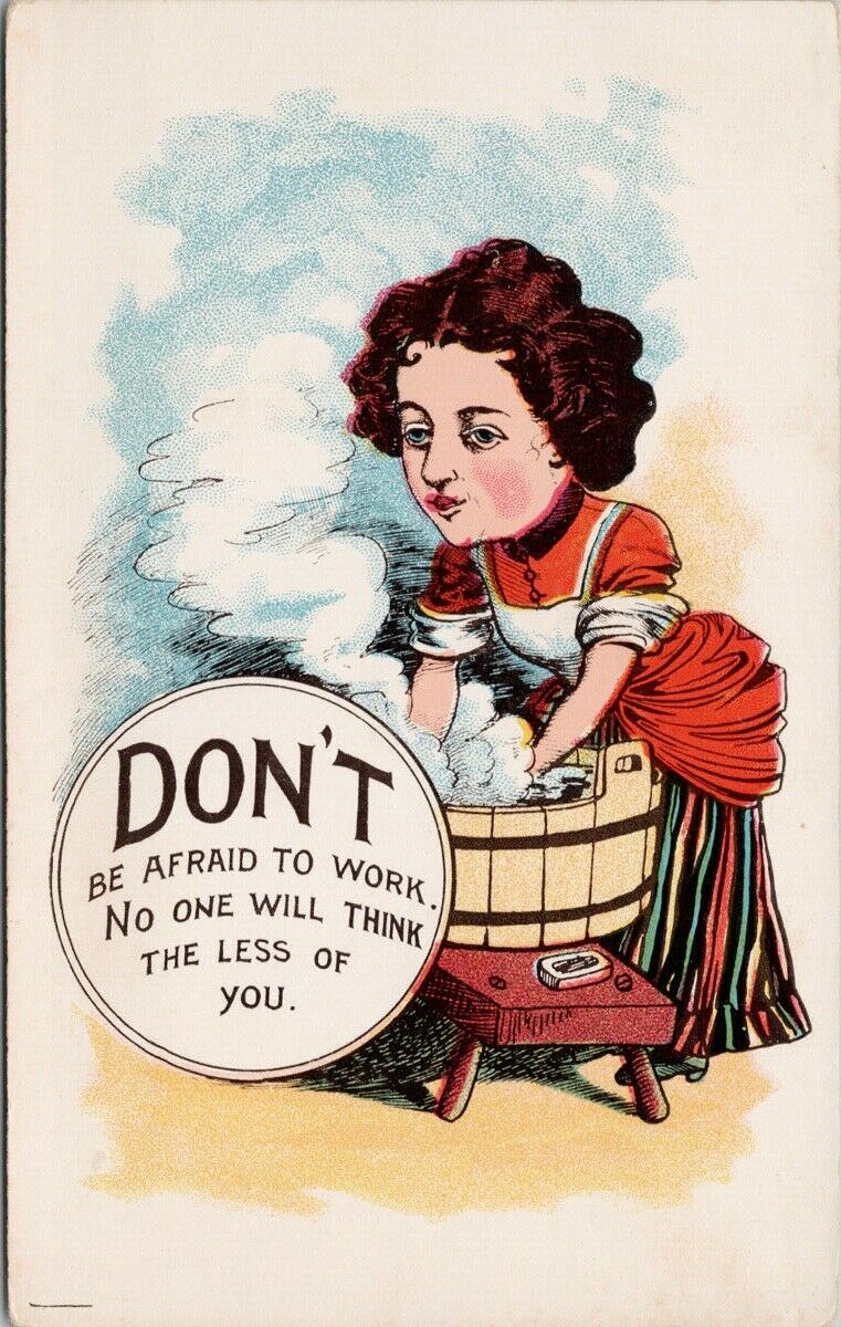 Woman Doing Laundry 'Don't Be Afraid To Work' Unused Postcard E64