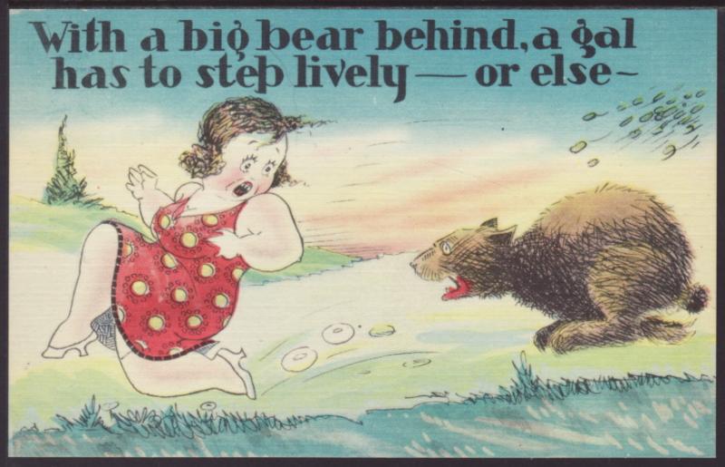 Woman,With a Big Bear Behind,Comic Postcard Unused Linen divided back Near Mint Grading Terms MINTÂ - Perfect in every way, regardless of age. Rarely seen, may not exist. NMÂ - Near Mint, you have to look clos ... Read More