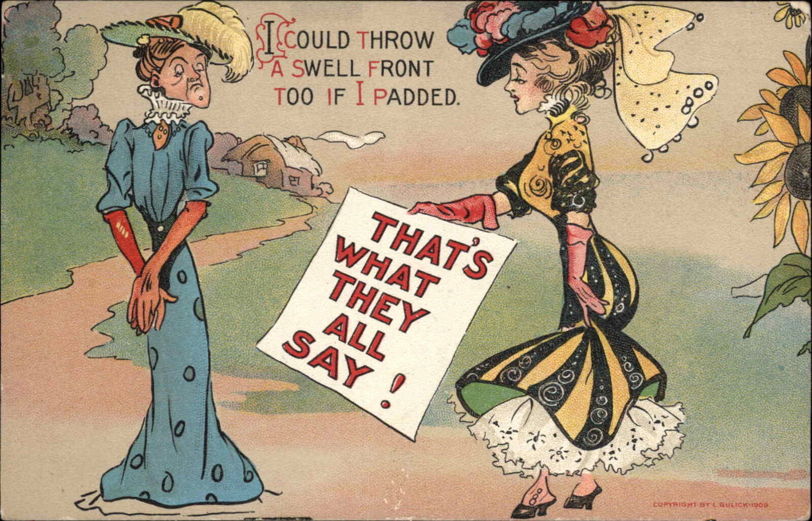 Women Comic Ugly Sexy Pretty Big Hats c1910s Postcard