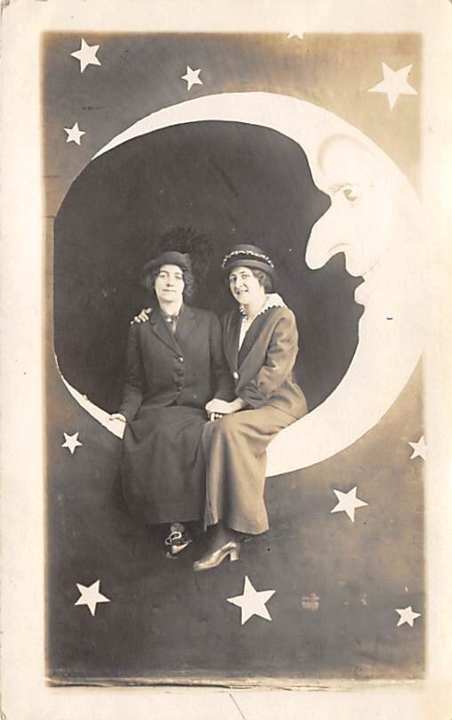 Women Posing in Moon Backdrop Postcard Women Posing in Moon Backdrop, Grade: 2 Size: Regular Size Postcard - approximately 3 1/2 inch x 5 1/2 inch (9 CM x 14 CM) Grading Scale: Grade 1 = Perfect corners Grade 2 ... Read More