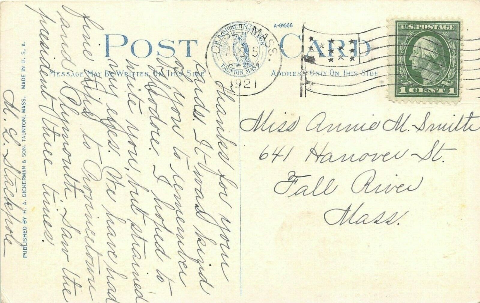 Woods Hole Massachusetts 1921 Postcard Stone Tower