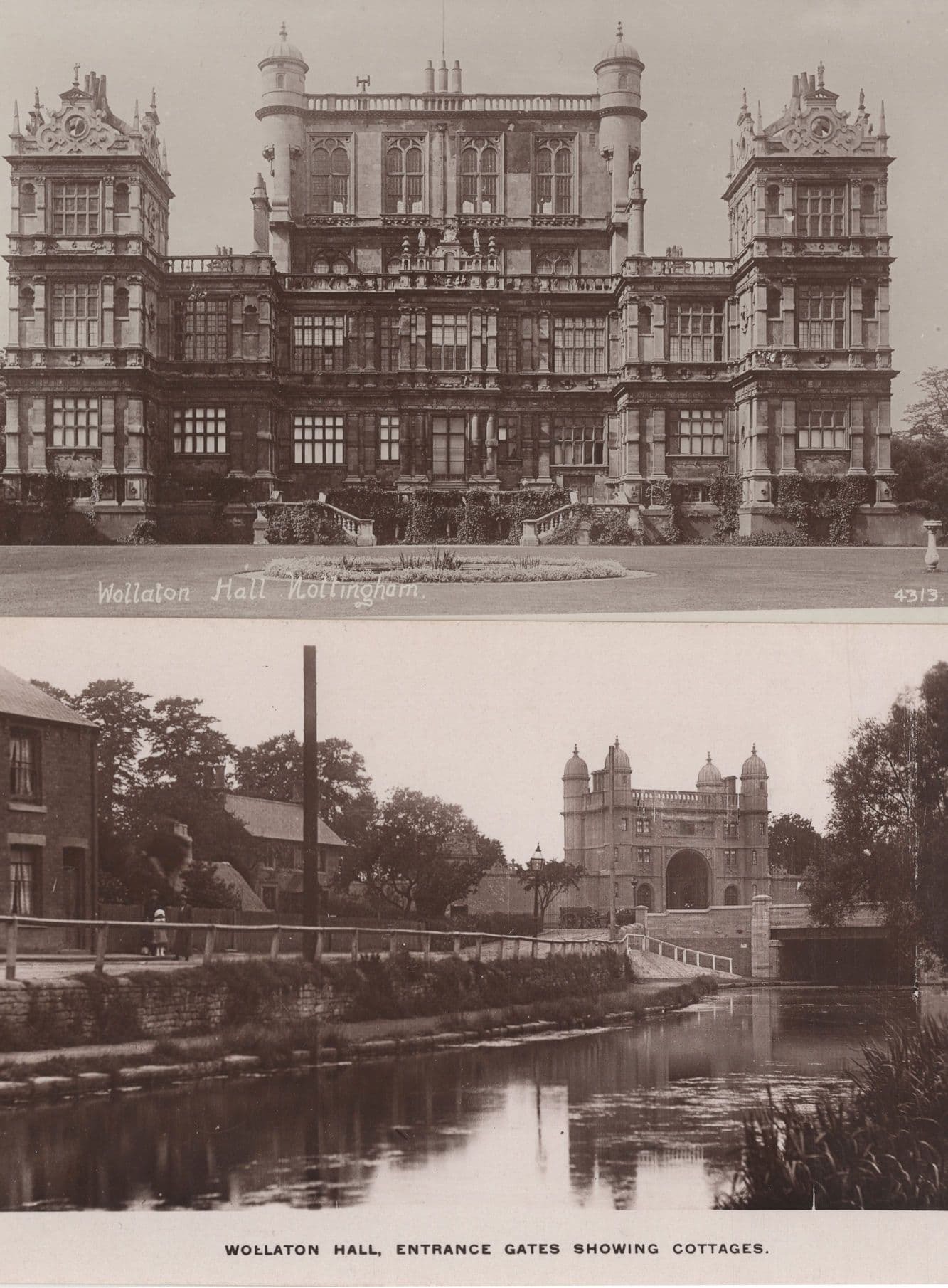 bg513 Two antique real photo postcards of Woolaton Hall the fitst showing the river unused bar light places this is great condition and a beautiful nautical postcard and the second is showing the building in all its magnificence from the same era both unused but from a WW1 collection and would appear circa this date the latter is unused and near mint.