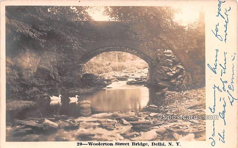 Woolerton Street Bridge Delhi NY Year Date of Postcard, or Postal Used / Year Used: 1906 Grade: 1 Product Size: R Product Type: 8 Grading Scale: Grade 1 = Perfect corners Grade 2 = Very Minimal corner wear, ... Read More