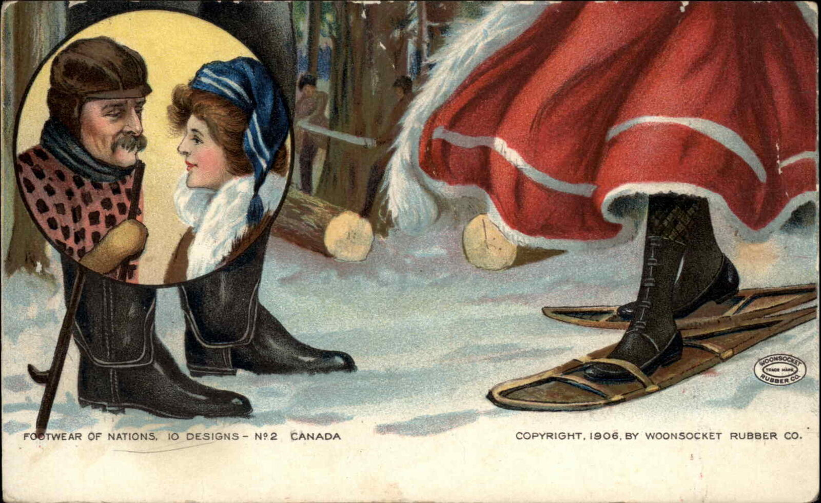 Woonsocket Rubbers Shoes Ad Design No. 2 Canada c1910 Vintage Postcard