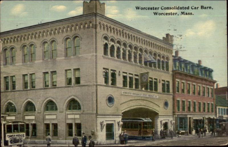 Worcester MA Consolidated Car Barn c1910 Postcard