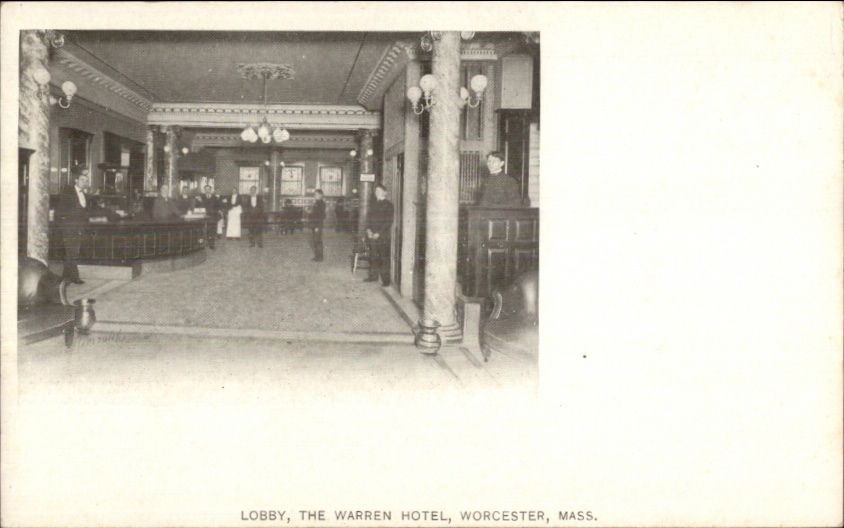 Worcester MA Warren Hotel Lobby c1905 Postcard