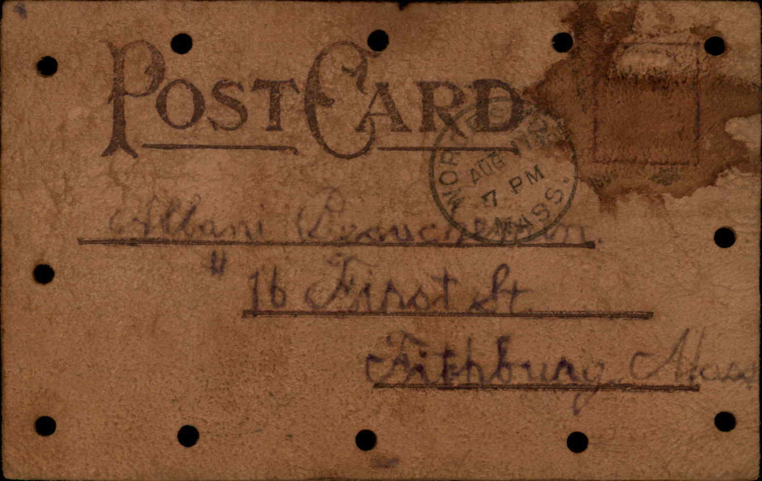 Worcester Massachusetts MA Post Office Real Leather Novelty c1910 Postcard