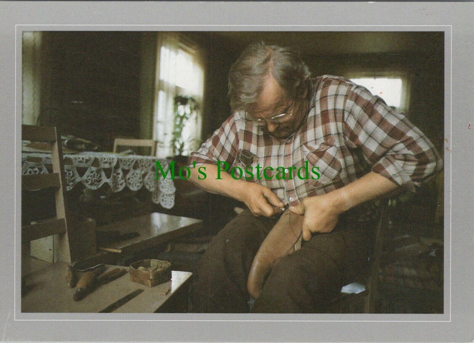 Postcard Description: Work Postcard - Occupations - Cobbler at Work - Shoe Repair - Kotisuutari Kuittuan Kyla, HeinavesiDefect(s):