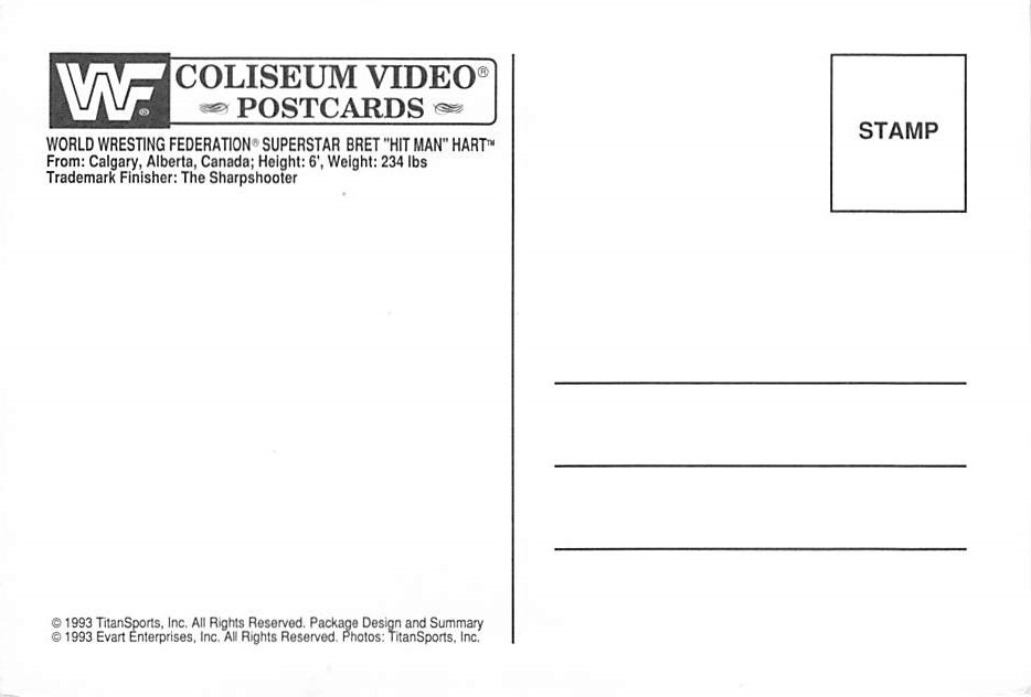 World Wresting Federation, Superstar Bret Hit Man Hart Postcard