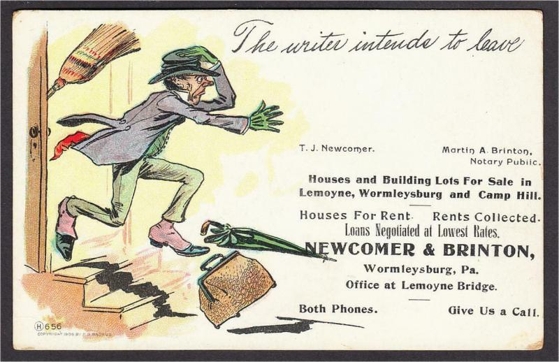 Wormleysburg PA Real Estate Advertising on Comic UDB Postcard c.1905