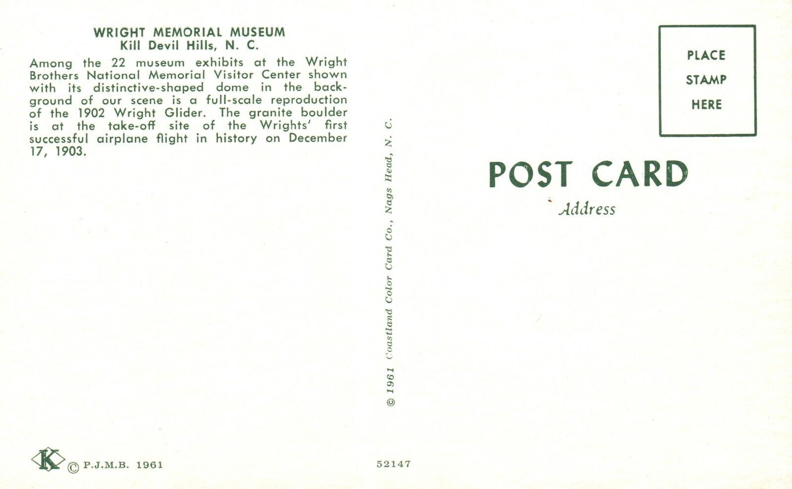 Wright Memorial Museum Kill Devil Hills North Carolina NC Vintage Postcard