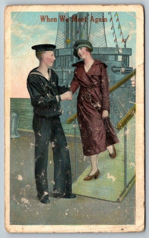 WW1 1918 US Navy Sailor When We Meet Again Postcard