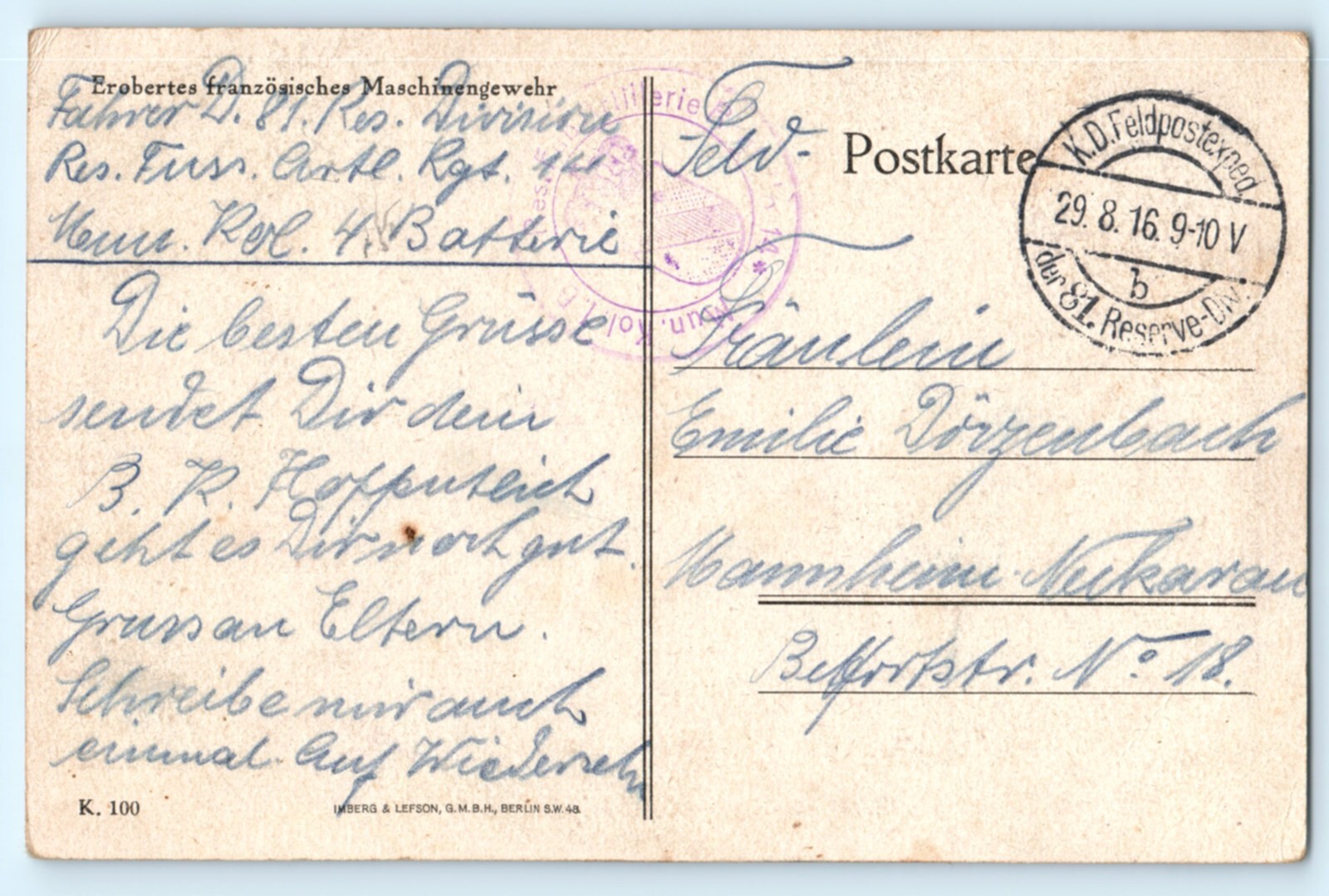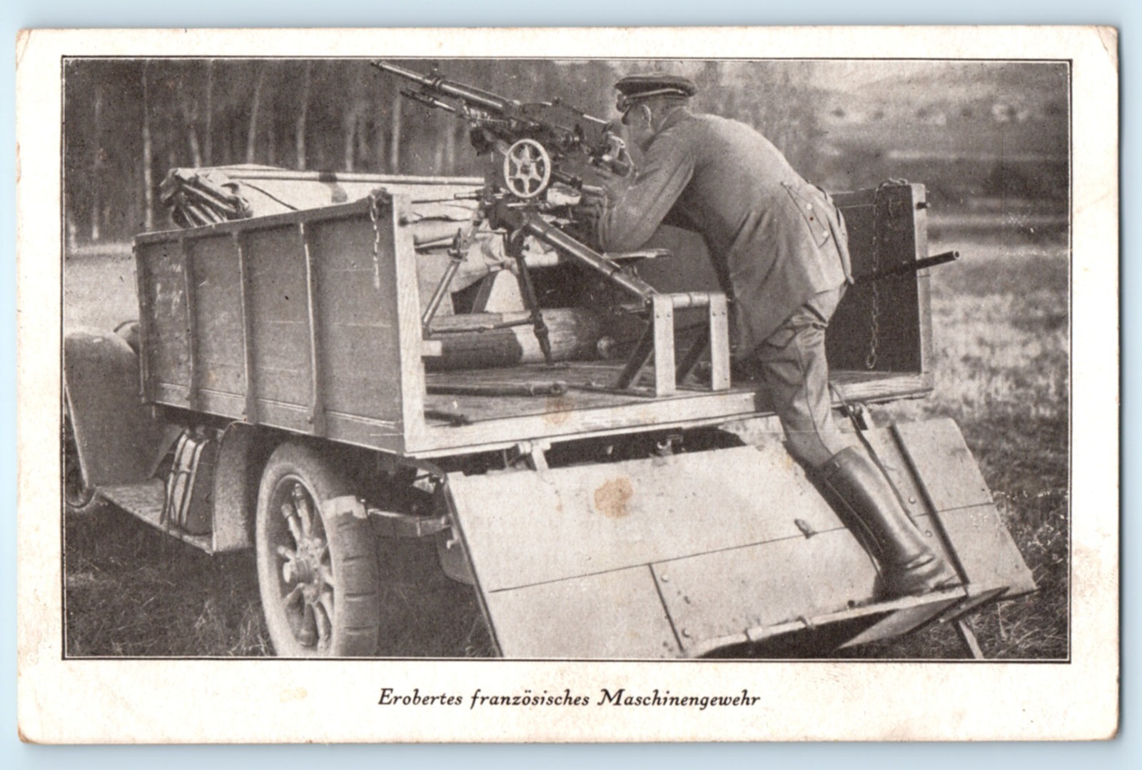 WWI German Soldier Machine Gun Truck Postcard
